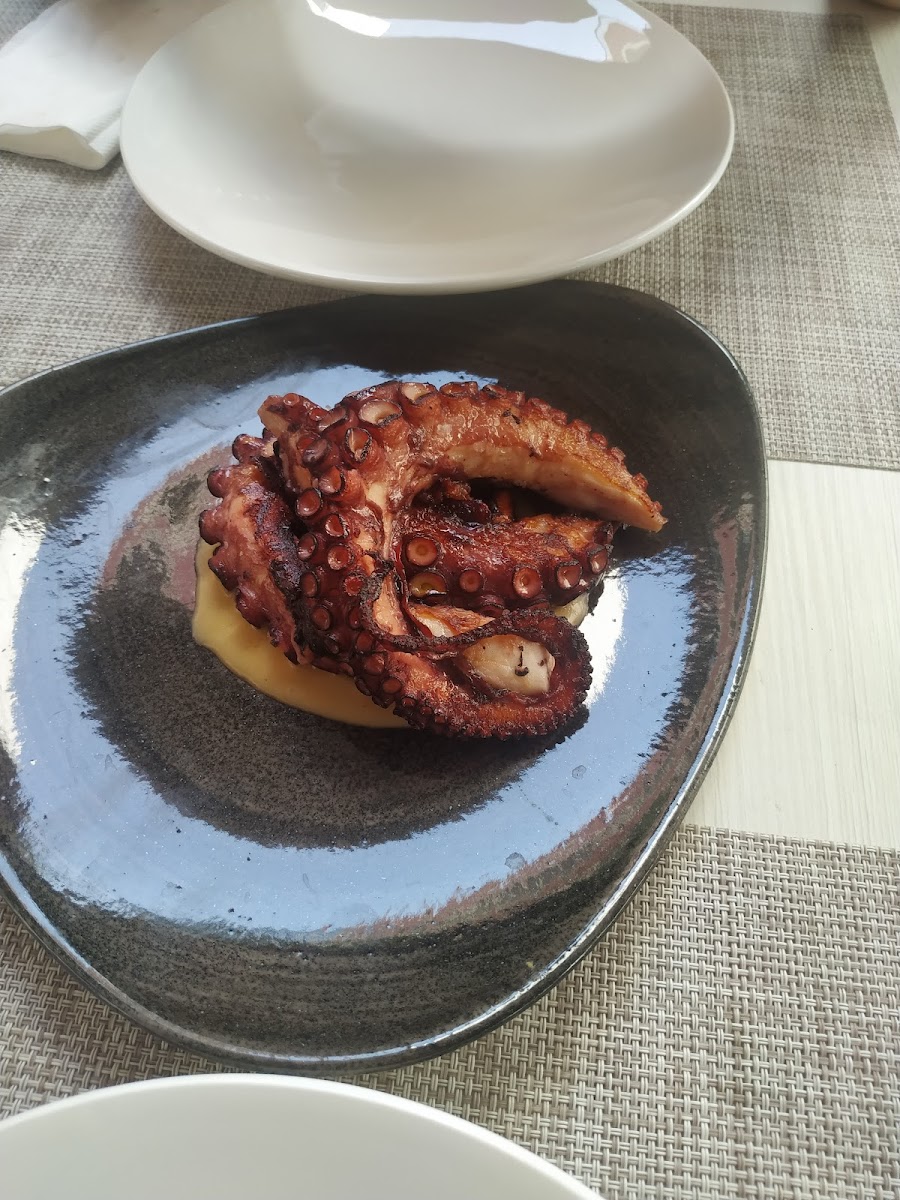 Fantastic food that is star worthy. Simple accommodation and no fancy cutlery and china but let’s be honest; it is the food that counts and that is simply fantastic. We had the pulpo which was just perfect, tender on the inside and seared on the outside. Also tiny little shells that were prepared with sea salt, garlic and olive oil. Just the perfect touch for this tasteful appetizer. We tasted the tomato salad with icebreaker made of olive oil……. It was perfect and very original a true taste-bomb. Also we had the calamari a la plancho, just like the pulpo the exact perfection of tender and seared. We flushed it down with a bottle of Verdejo. When we asked for the bill we were expecting a Michelin star like bill but is was less than €70 all included. This place is a MUST go for culinary lovers.